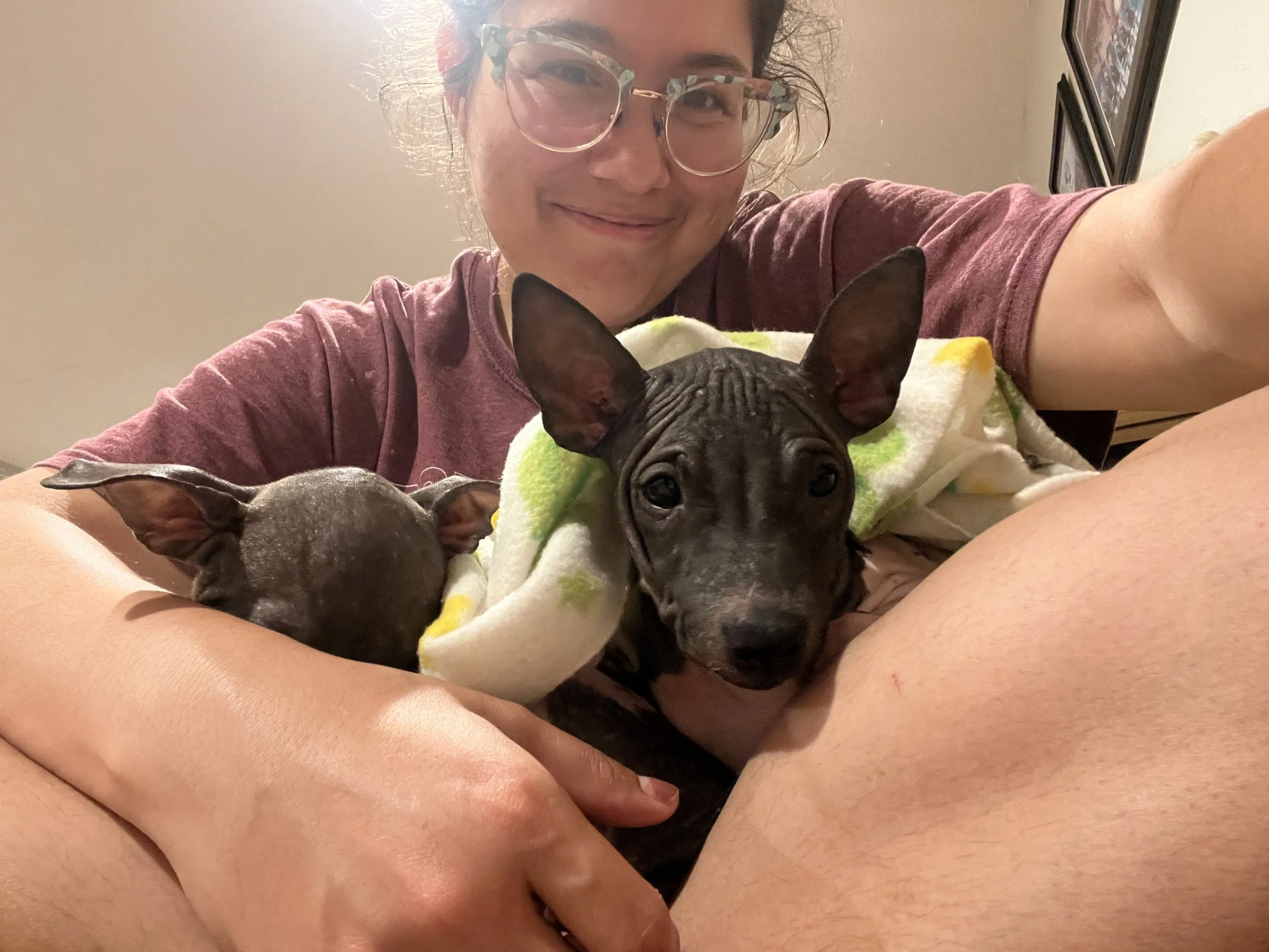 A slippery little American Hairless Terrier full of opinions, wiggles, and a stunning lack of fur.